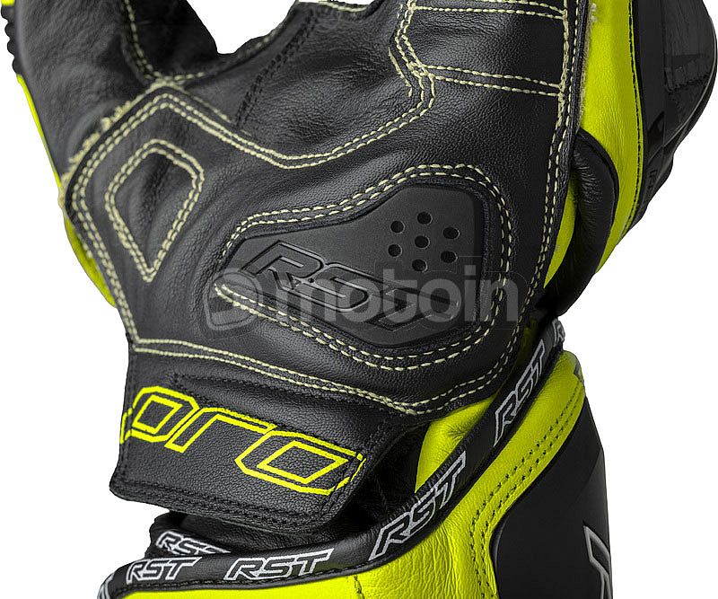 La costruzione in pelle di canguro al 100%, supportata da un'ampia copertura in Kevlar in tutte le zone vulnerabili, la protezione D3O nelle nocche, nel palmo e nel pollice, oltre a un nuovissimo protettore delle nocche in fibra di carbonio completamente forgiato, si combinano per fare di questo guanto da gara RST le più alte specifiche fino ad oggi.