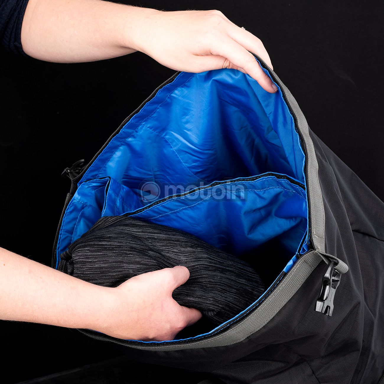 Je uitrusting blijft droog en is gemakkelijk toegankelijk dankzij de waterdichte constructie. Het interne waterdichte compartiment kan volledig worden verwijderd of zelfs worden verdubbeld om de inhoud gescheiden te houden en er kunnen extra waterdichte inzetstukken van 10, 20 of 30 liter worden toegevoegd. Slechts vier draaibewegingen van de rolsluiting zorgen voor een waterdichte afsluiting.
