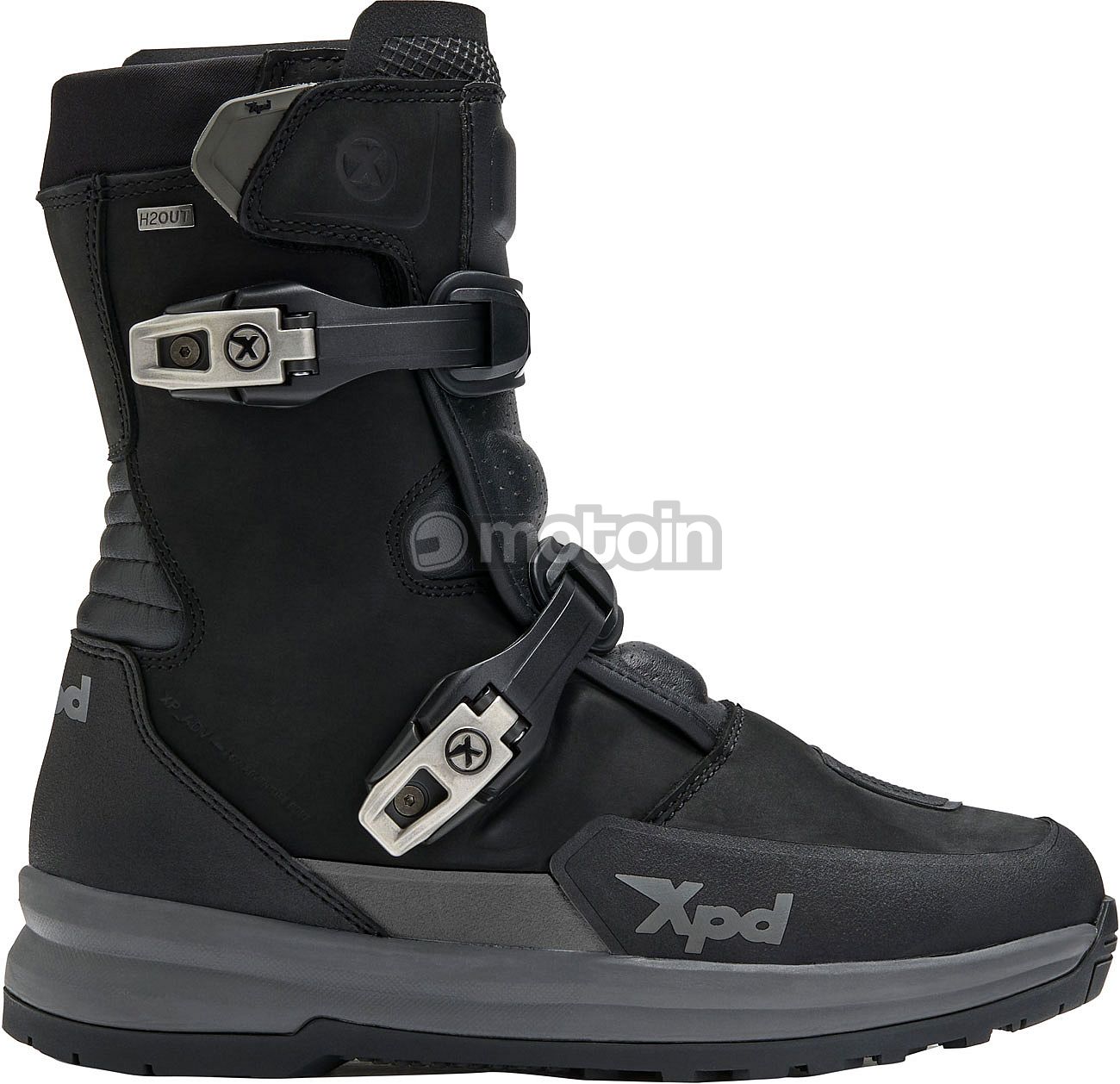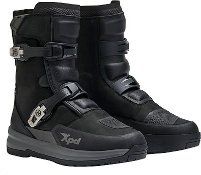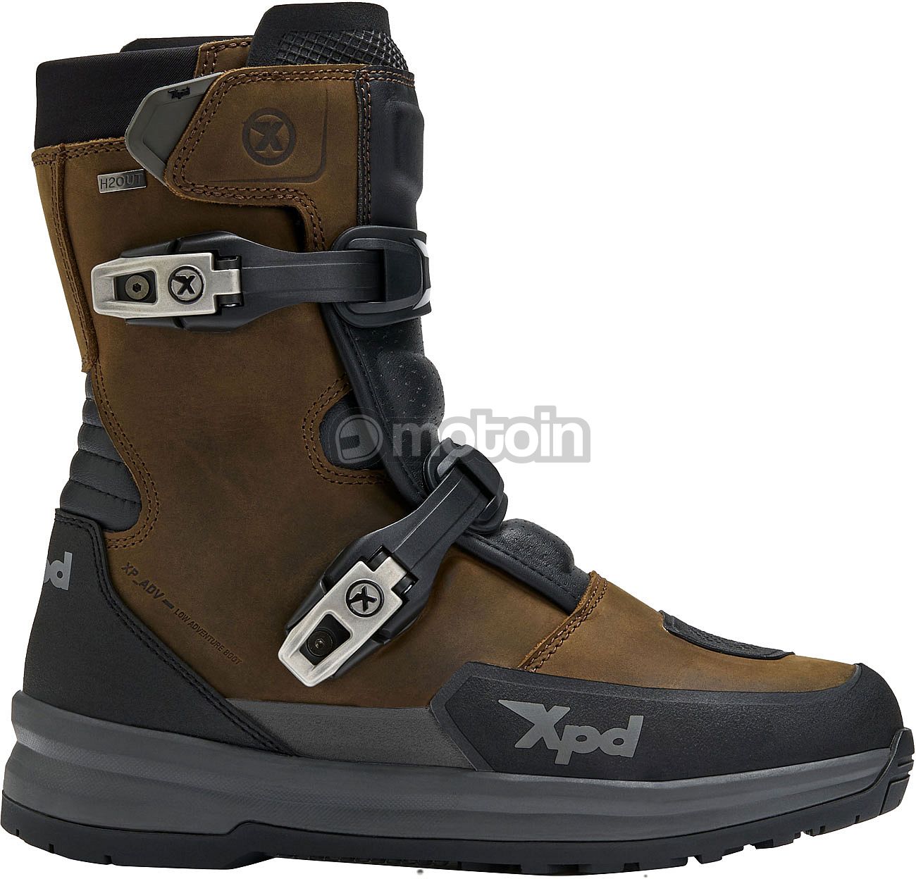Die Mid-Version des X-Adventure H2OUT®. Dieser Stiefel aus vollnarbigem geöltem Leder, das extremen Herausforderungen standhält, vereint Strapazierfähigkeit und Komfort in jeder Situation. Die speziell von XPD für das Adventurefahren entwickelte Sohle verfügt über ein Dual-Density-Gummiprofil, das selbst auf schwierigem Gelände für außergewöhnlichen Grip sorgt, sowie über eine stoßdämpfende und gepolsterte EVA-Zwischensohle, mit der Sie Ihre Grenzen weiter verschieben können.