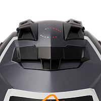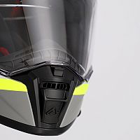 The aerodynamic design of the helmet has been developed to minimize drag and thus contribute to a smoother and more stable driving experience even at high speeds. A major advance has been made with the innovative aerodynamic helmet peak, which is attached at four points instead of the conventional three, ensuring maximum strength and stability under all circumstances.