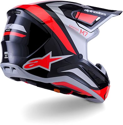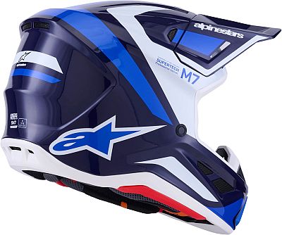 The S-M7 helmet was developed for off-road racing and is optimized to offer the perfect blend of excellent ventilation and comfort in a lightweight helmet, while its highly aerodynamic composite shell provides exceptional impact protection. In addition to Alpinestars' patented A-Head Fitment and Peak Detaching System, the S-M7 features innovative PLASMA technology on the underside of the shell edge, which provides optimal energy dissipation in the event of an impact in the collarbone area.