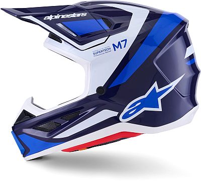 El casco S-M7 fue desarrollado para las carreras off-road y está optimizado para ofrecer la mezcla perfecta de excelente ventilación y confort en un casco ligero, mientras que su calota de composite altamente aerodinámica proporciona una excepcional protección contra los impactos. Además del A-Head Fitment y el Peak Detaching System patentados por Alpinestars, el S-M7 incorpora la innovadora tecnología PLASMA en la parte inferior del borde de la calota, que proporciona una óptima disipación de la energía en caso de impacto en la zona de la clavícula.