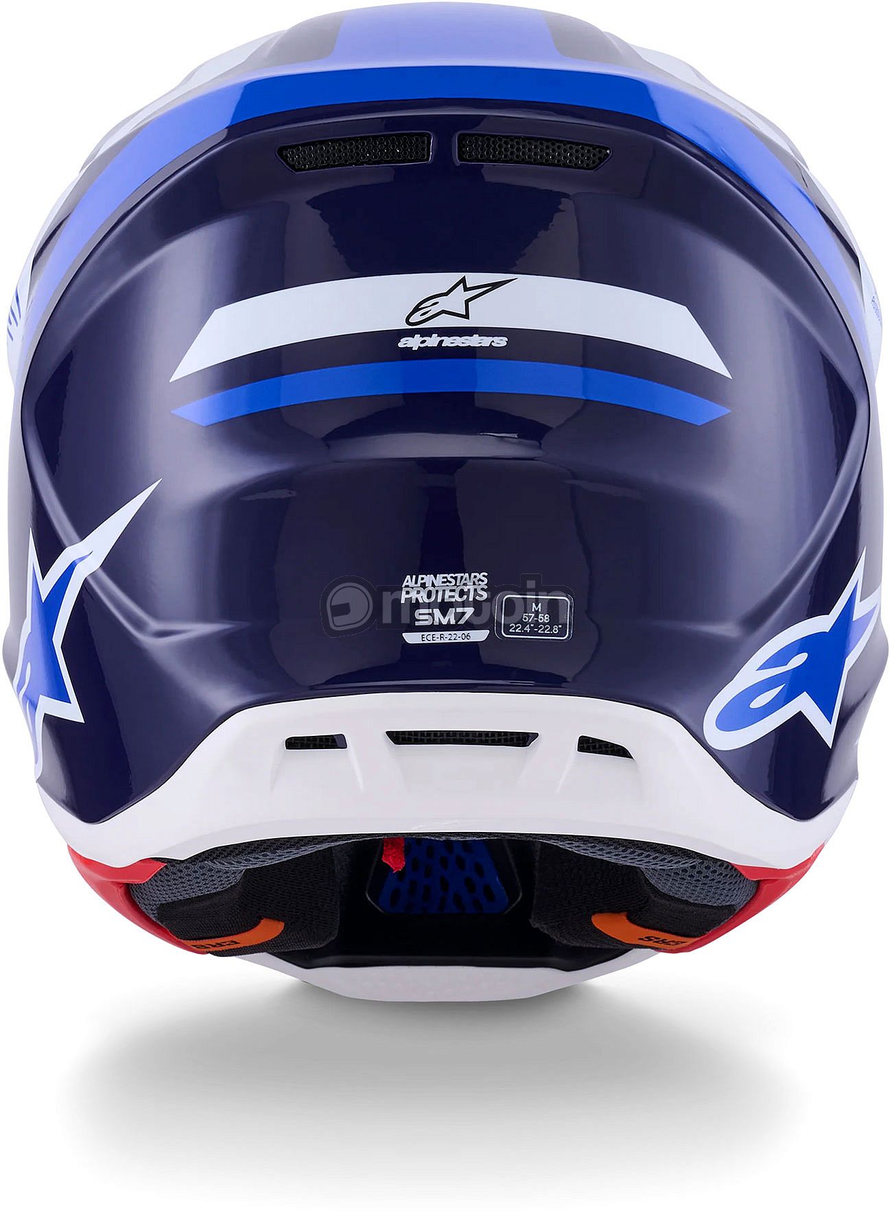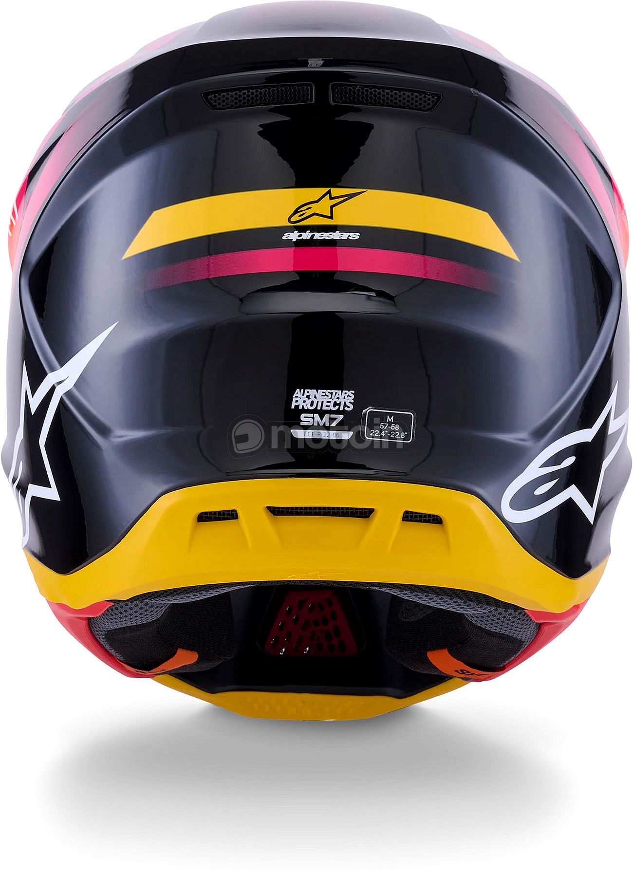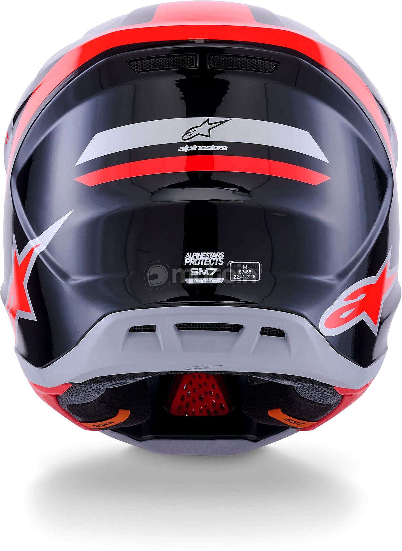 - Specific rotational impact protection is ensured by the combination of the inner shape and special coating of the EPS liner, together with a specially developed surface in the comfort liner. This special coating technology, patented by Alpinestars, reduces the rotational acceleration transmitted to the rider's head: The S-M7 helmet exceeds the new ECE 22.06 standard for maximum rotational acceleration by 76%