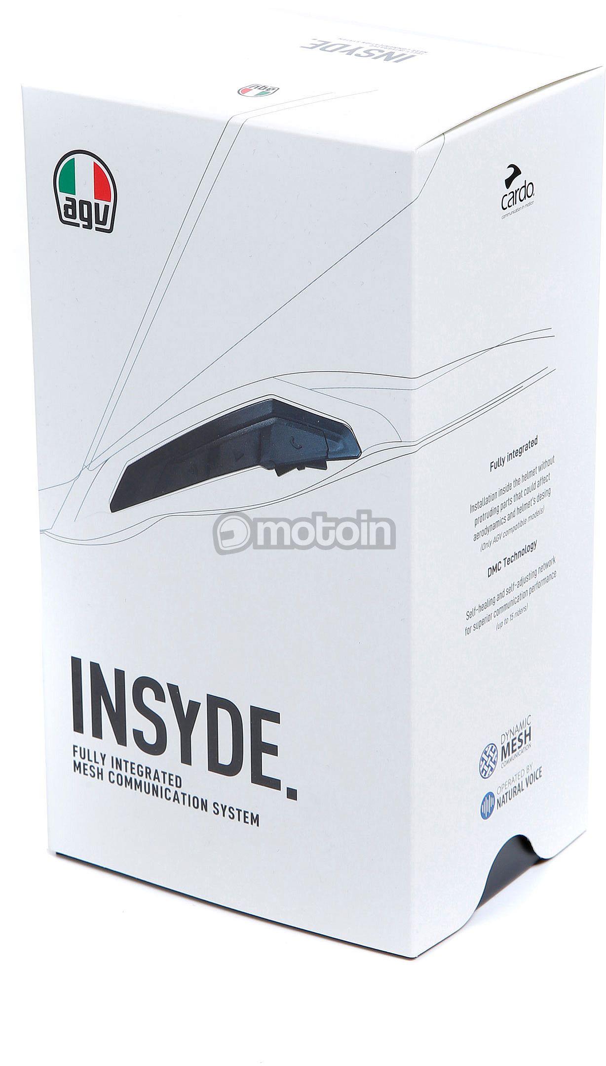 Integrated intercom communication system for AGV Tourmodular with DMC™ Mesh Technology Cardo technology. Connect up to 15 intercoms simultaneously with a range of up to 6 km.