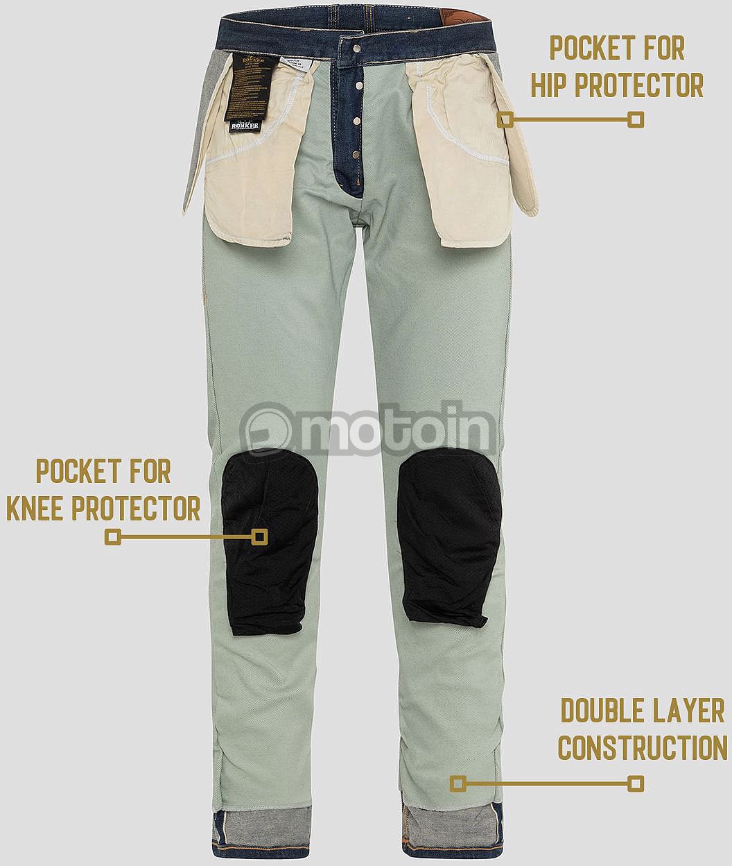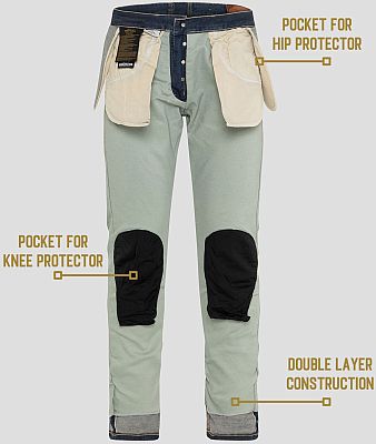 The exclusive ROKKER CLASSIC MOTORCYCLE LINE is made from carefully selected denim fabrics in Portugal. The combination of authentic jeans look, 100 % shoeller-dynatec® lining and excellent fits make this motorcycle clothing not only stylish but also very suitable for everyday use.