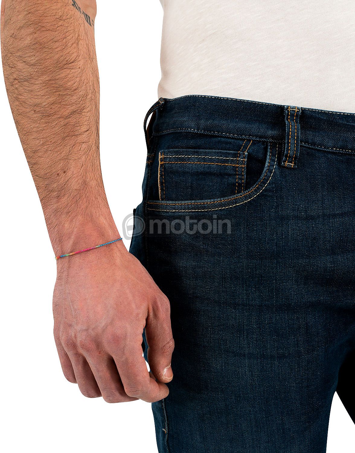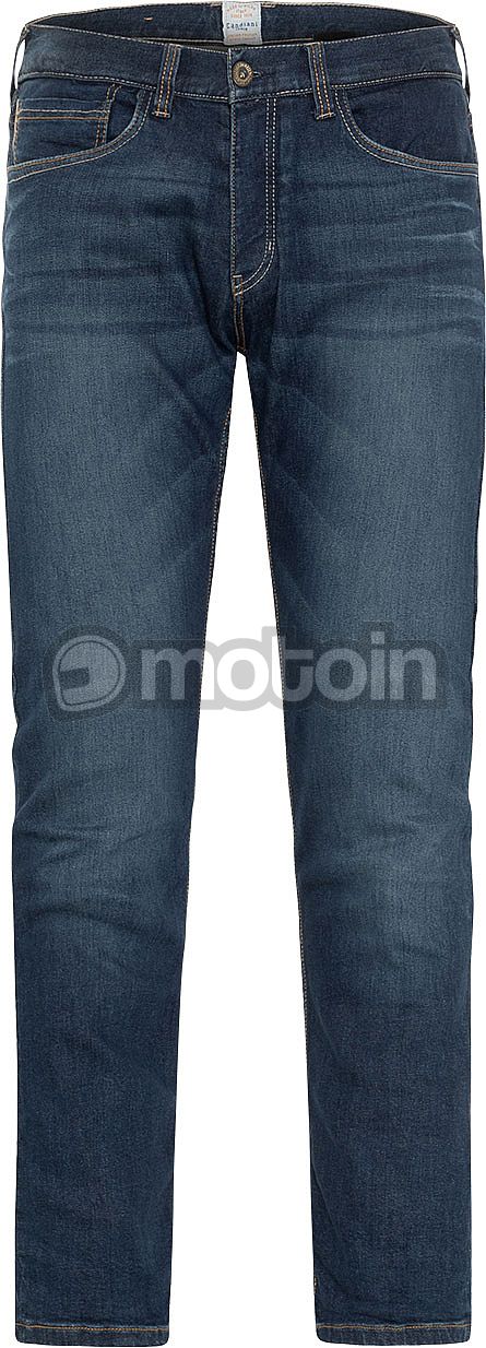 Highly abrasion resistant, two layer motorcycle jeans in five pocket style with button fly.