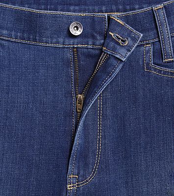 Stonewashed denim workwear made of elastic material with RECALL technology.