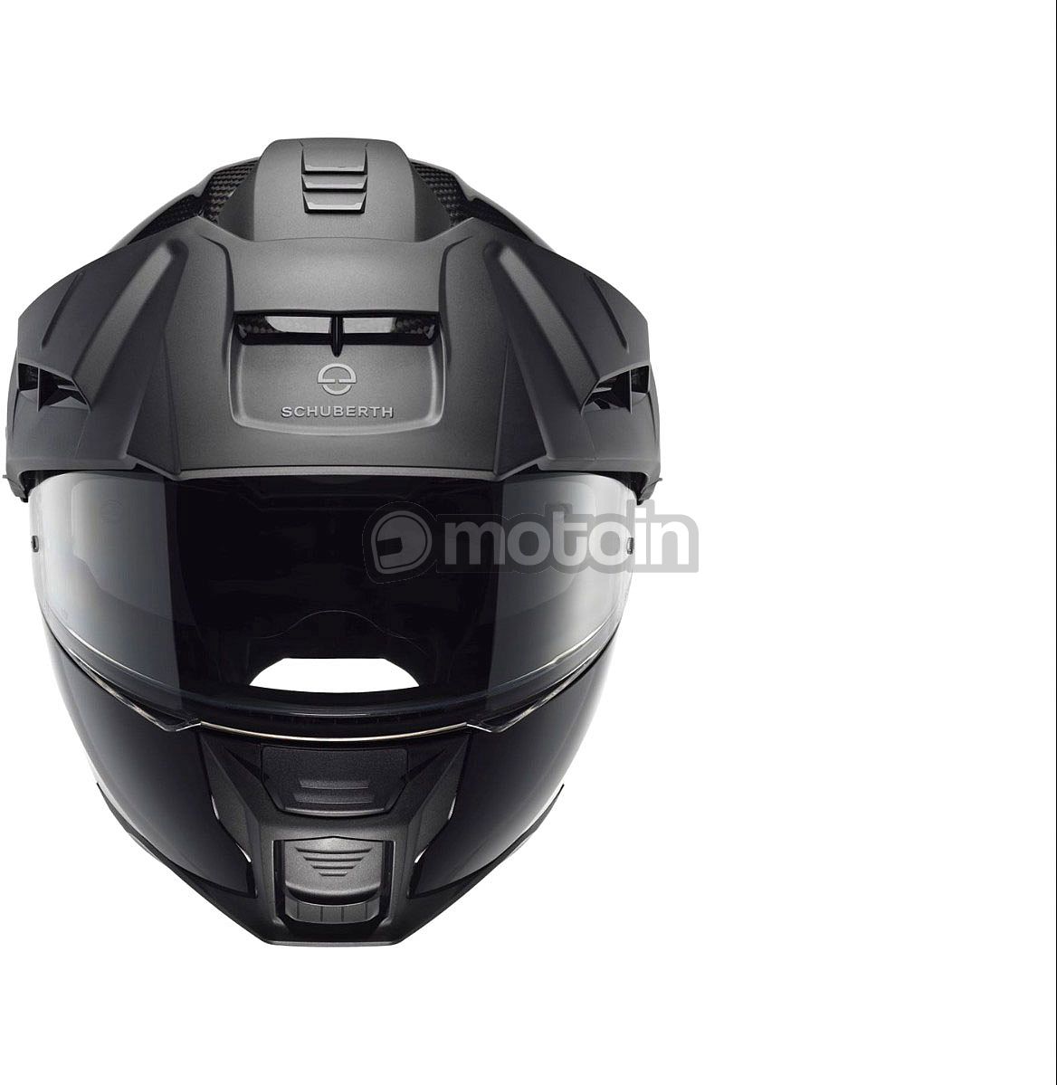 Den nye top af E2 Carbon blev udviklet i SCHUBERTH-vindtunnelen for at minimere vibrationer og turbulens. E2 Carbon tilbyder forskellige konfigurationer: Ikke alene kan toppen justeres til tre positioner, den kan også nemt fjernes.