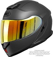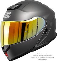 The integrated, high-quality QSV-2 sun protection visor of the SHOEI NEOTEC3 can be continuously extended and almost completely covers the usable field of vision, even downwards. It can be replaced easily and without tools by an optional yellow-tinted visor with contrast-enhancing effect. This additional visor thus ensures optimum visibility for a wide range of applications and weather conditions.