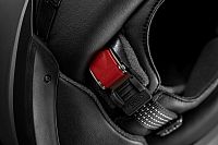 The micro-ratchet closure on the pleasantly narrow chin strap makes it easy to put on and take off this incomparably high-quality flip-up helmet model from SHOEI.