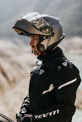 The transition area between the chin section and the helmet shell is smoothly designed to reduce turbulence in the ear area and the associated noise.