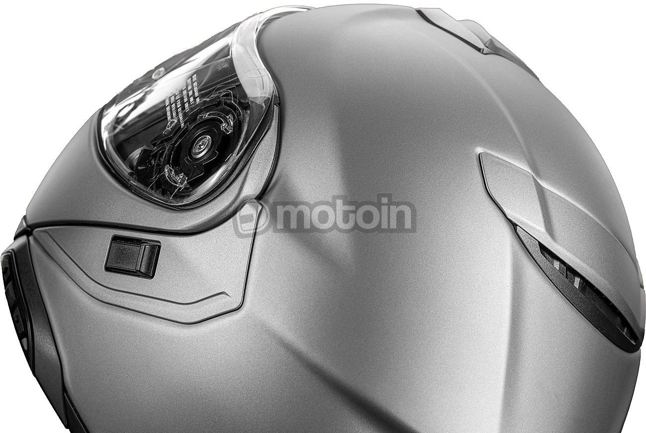 Smooth surfaces and transitions reduce the helmet's wind resistance and noise impact on the wearer, but allow the integrated spoilers on the sides and back of the helmet and thus the sporty character of the SHOEI NEOTEC3 to be seen.