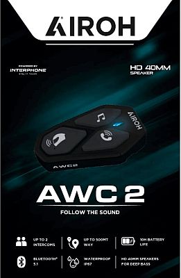 Airoh AWC 2 kommunikationssystemet er den perfekte ledsager til lange ture såvel som til den daglige pendling til arbejde. Den imponerer med sit kompakte, minimalistiske design, som takket være det integrerede batteri ikke går på kompromis med hjelmens komfort eller udseende.