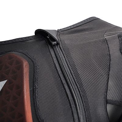 This protector conforms to the body, protecting against sudden blows while providing great freedom of movement, both in high and low temperatures, and maximum ventilation. The elastic band connecting the back to the chest provides additional adjustment. Internal protectors are removable for complete jersey washing.