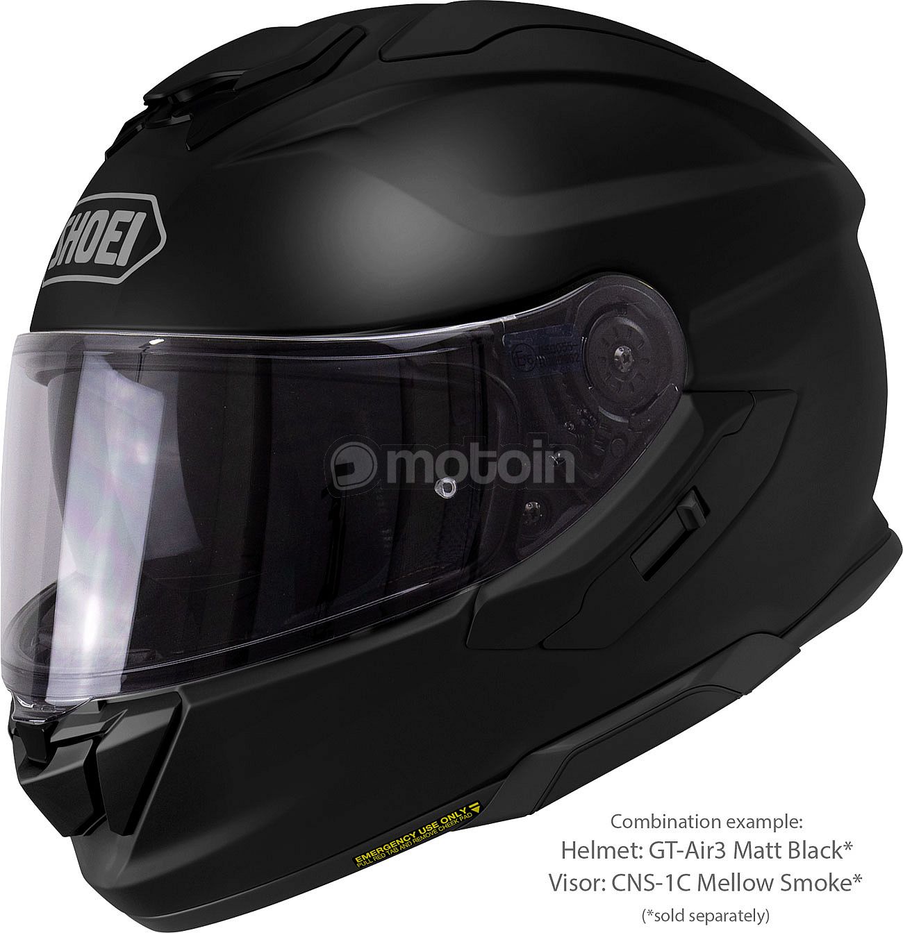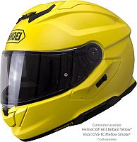 The integrated, high-quality QSV-2 sun protection visor of the SHOEI GT-Air 3 can be continuously extended and almost completely covers the usable field of vision, even downwards. It can be replaced easily and without tools by an optional yellow-tinted visor with contrast-enhancing effect. This additional visor thus ensures optimum visibility for a wide range of applications and weather conditions.