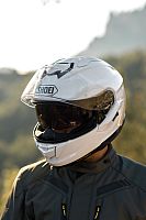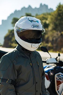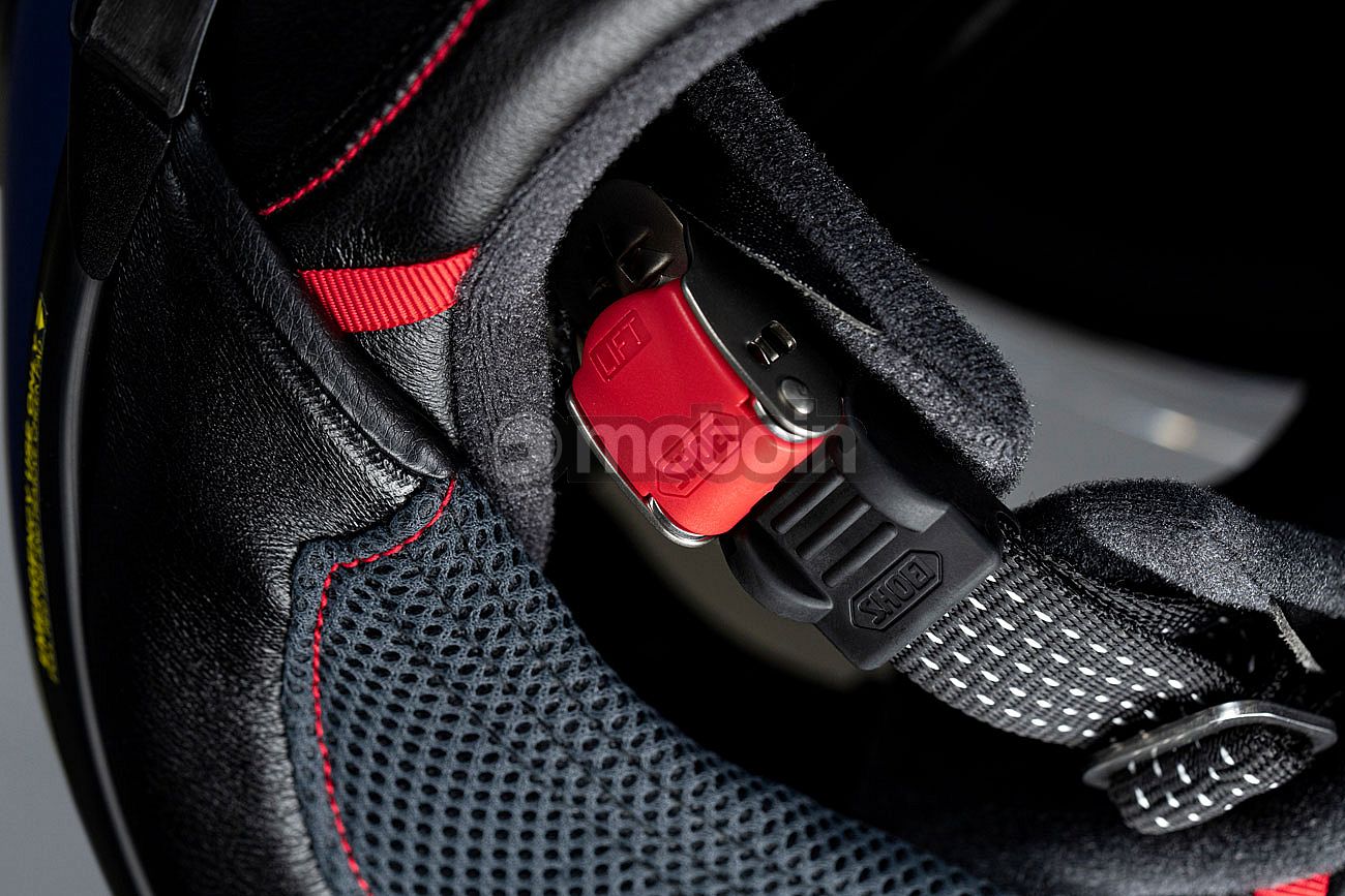 The micro-ratchet closure on the pleasantly narrow chin strap makes it easy to put on and take off this helmet model from SHOEI.