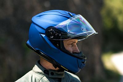 The clear CNS-3C visor fitted as standard opens up an almost unrestricted horizontal and vertical field of vision. It provides a good overview of the traffic scene, for greater safety in hectic road traffic.