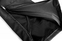 - Zippered side pockets with internal pass-through