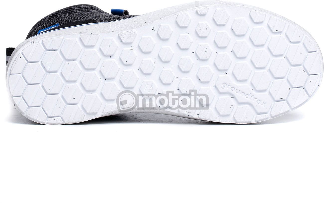 Stability and driving feel, on the other hand, are provided by the Groundtrax® sole for optimal grip on the footrests, while the ZPlate® insert is synonymous with walking comfort. The aim is to combine longitudinal flexibility to follow all the natural movements of the foot and lateral rigidity to ensure maximum safety in the event of crushing.