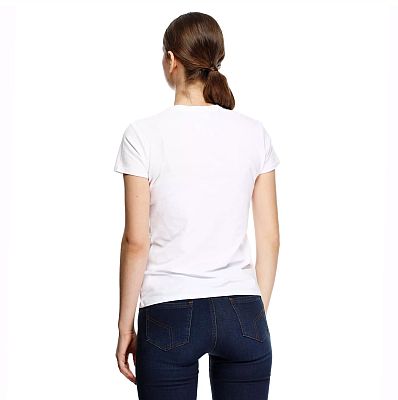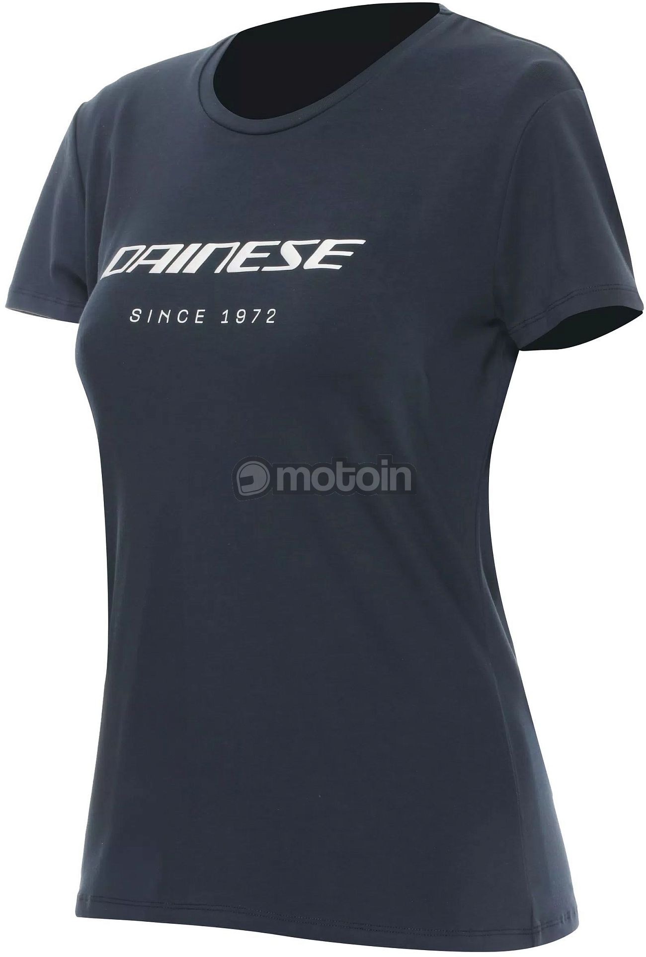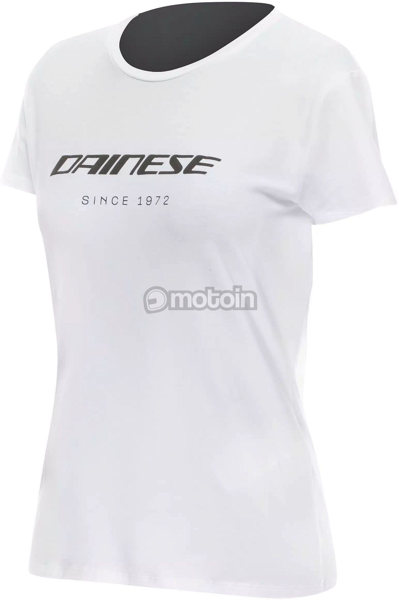 T-shirt feminina com gola redonda em puro algodão com a marca Dainese na frente.