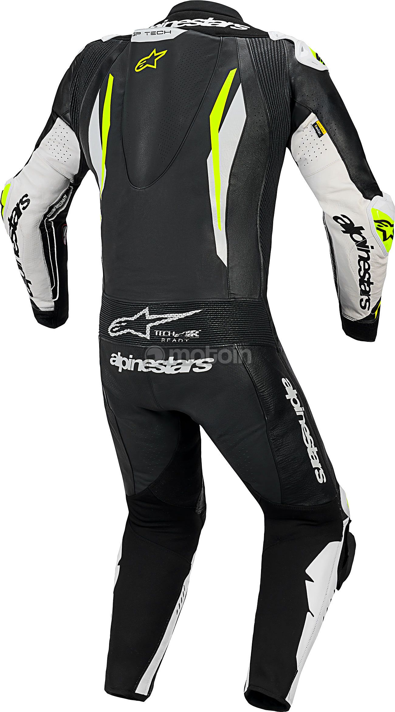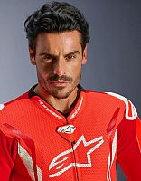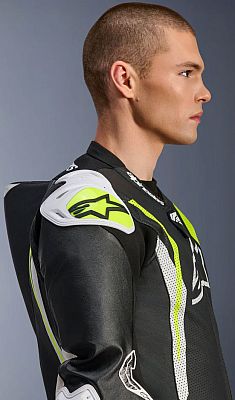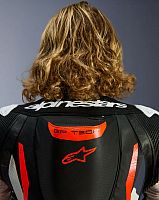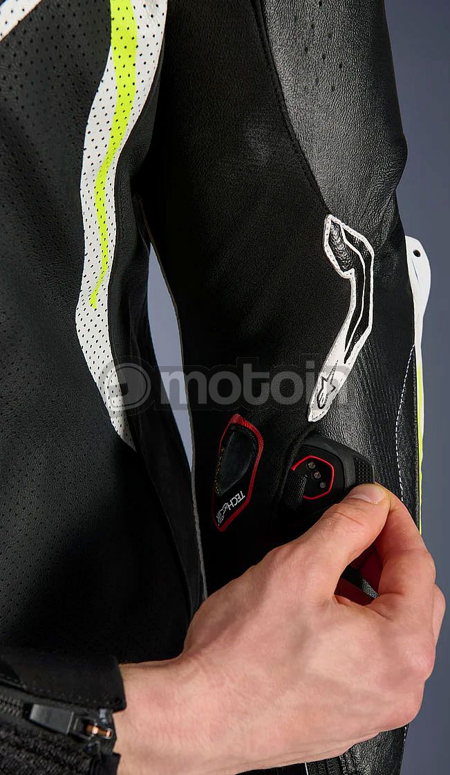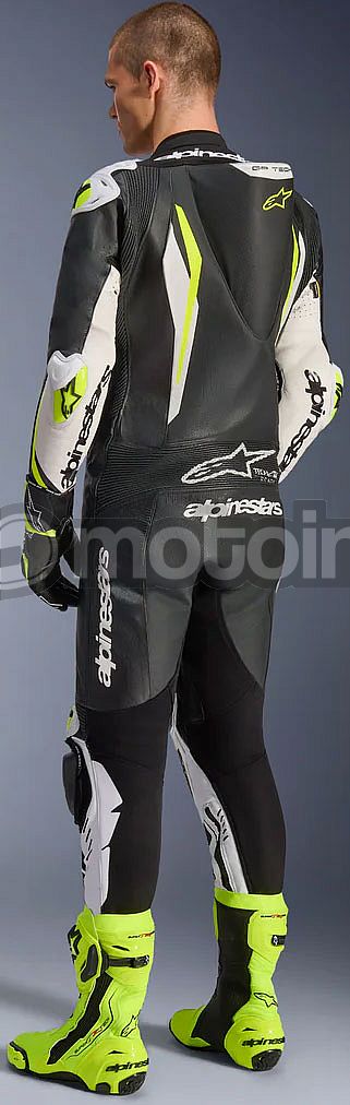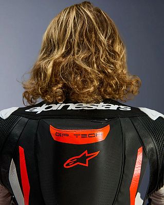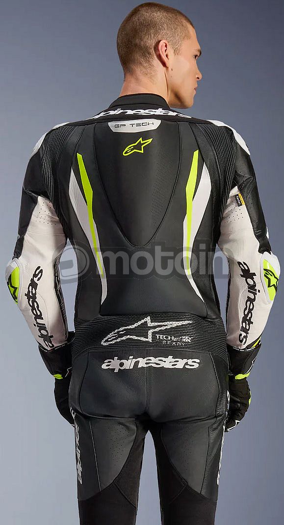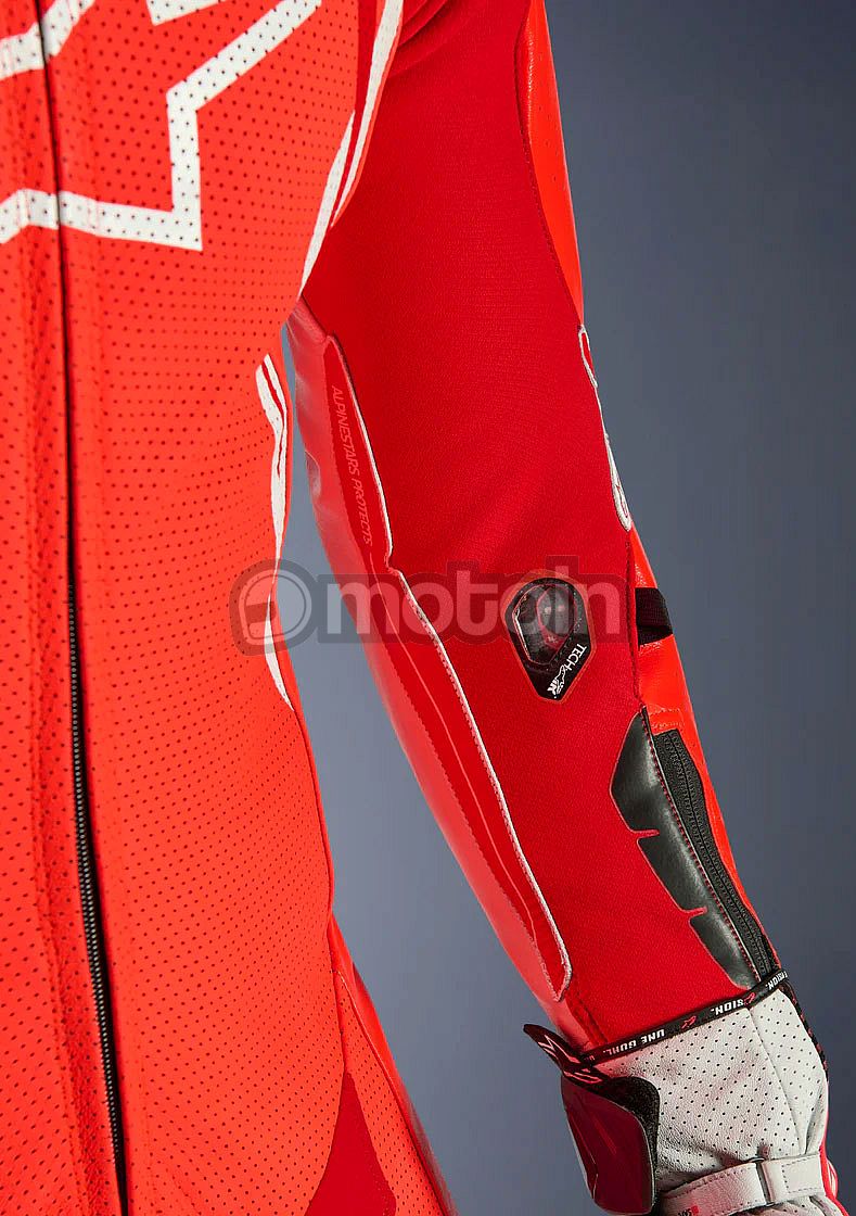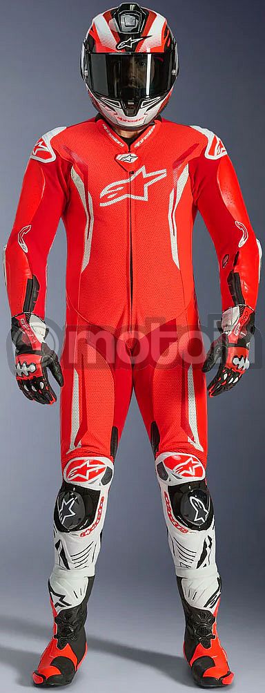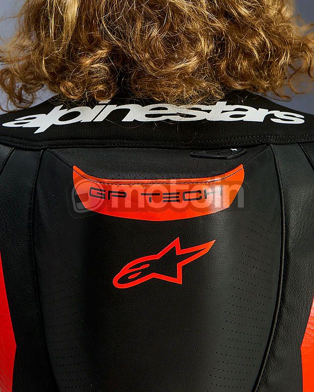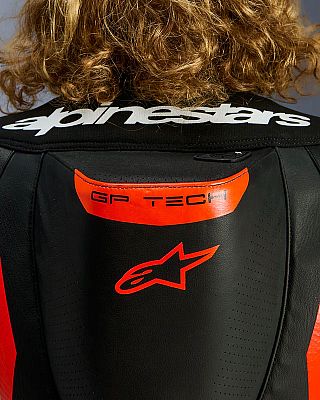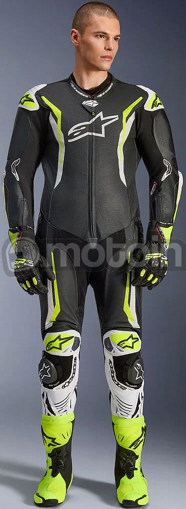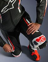 - Equipped with the Alpinestars GP Tech knee slider. Optimized for use on the racetrack and featuring an anatomical design for optimal contact, even wear distribution, and reduced weight, its slim profile with hook-and-loop patch and strategically positioned V-cuts allows for more precise placement on the knee while preventing material bunching, further improving aerodynamic performance