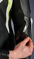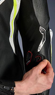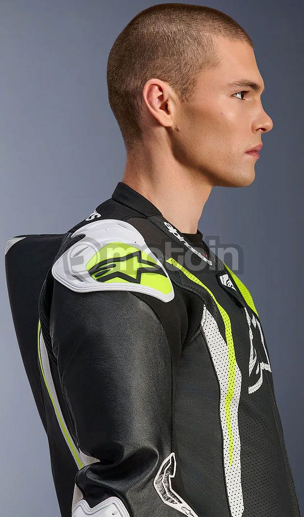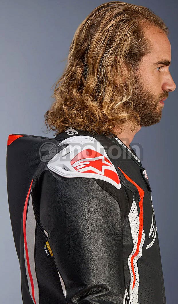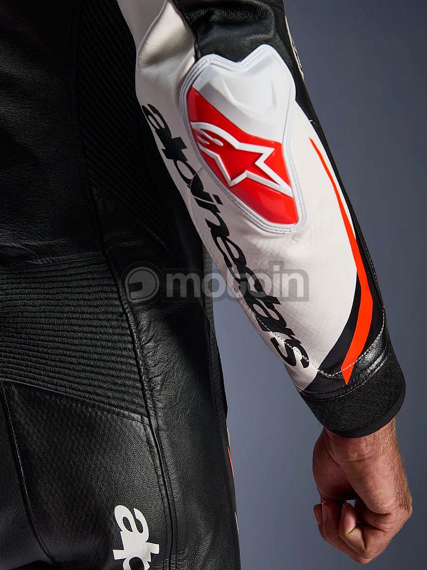 - Racing-grade leather construction for superior abrasion resistance, further reinforced by a brand-new design leather patch strategically positioned on the inner elbow