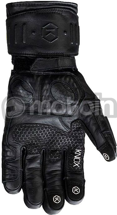 - Patented low-profile Knox Scaphoid Protection System (SPS) on the palm (Patent No EP1594378) to eliminate the grab effect that occurs when a leather palm makes contact with the road, reducing the risk of hyper extension which can be the cause of a broken scaphoid