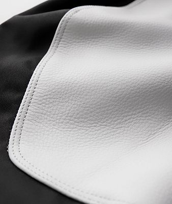 - Durable full grain leather inner knee grip panels