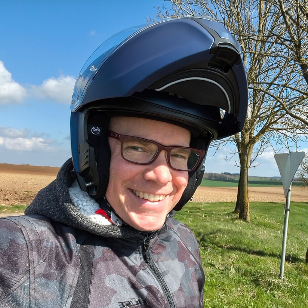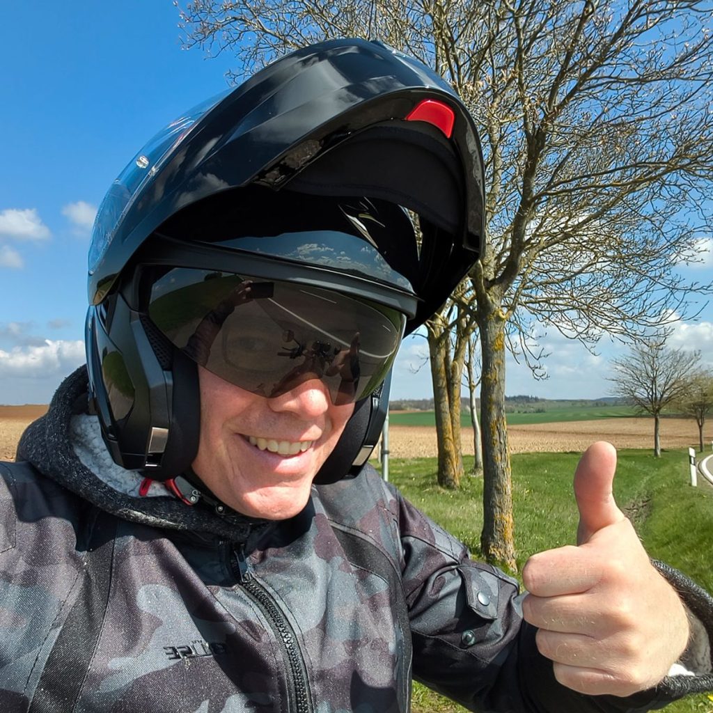 Die Bedienelemente lassen sich mit Handschuhen hervorragend betätigen – nur der Brillenkanal sitzt zumindest für den Autor einen Tick zu hoch, sodass die Sehhilfe feinjustiert werden muss. Der Scorpion kann zum Offen-Fahren per Knopfdruck an der Seite fixiert werden, sodass niemals nicht während dem Fahren die Klappe versehentlich herunterfällt.